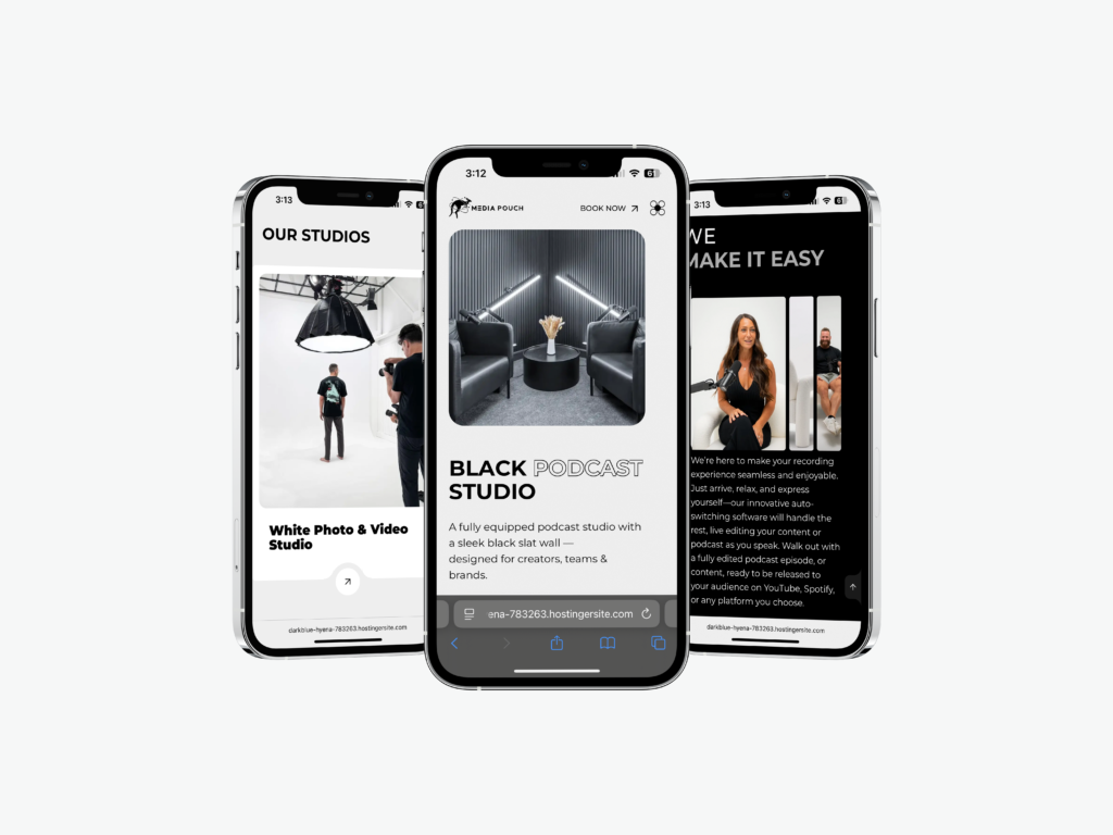 The goal of this project was to design and develop a website that reflected Media Pouch Studios’ innovative and high-tech identity while maintaining an approachable and creative tone. The site needed to effectively communicate the studio’s unique capabilities, showcase its facilities, and serve as a seamless platform for potential clients to learn more and book sessions.
